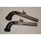 Un pistolet est en très bel état, le second présente une crosse cassée et endommagée, il manque une vis inférieure.