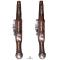 - signés "LE ROY A JOINVILLE" avec des canons ronds de 14cm, bagués évasés à la bouche et à la moitié, puis à pans vers le tonnerre avec des formes incrustées dorées et une finition bleuie d'origine.