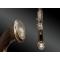 Pommeaux ovoïdes et calottes en acier jaspé et gravé.