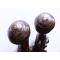 - Pontets repercés à l'avant des , moulurés ainsi que les porte-baguettes et calottes, ces dernières portant un masque menaçant (usé) dans une couronne végétale.