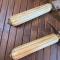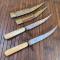 Poignée EN OS sculptée, pommeau, virole (manque une) garde en laiton , lame courbe simple tranchant avec le même marquage sur chaque lame , dans leurs fourreau bois habillé de velours (un décousu) à deux garnitures laiton ciselé de motifs .