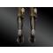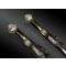 Canons à pans, puis rond, à âmes lisses, à deux registres séparés par des bourrelets en leur milieu ; richement décorés sur le dessus par un décors en damasquine d’or : bouquets, soleil rayonnant, étoiles et croissant de lune. Guidons en laiton doré. Queues de culasses gravées et à fond d’or.