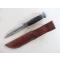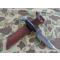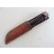 RH PAL 36 parkérisé. Le couteau RH 36 était fabriqué jusqu’en 1940 par le département coutellerie de Remington Arms Co. Après 1940 et durant toute la guerre il sera fabriqué par Pal Blade Co. Le PAL 36 fait parti des couteaux achetés en urgence sur catalogue, puis par contrat par l’armée US durant la WW2. Il sera utilisé par toutes les branches de l’armée américaine. Dans la nomenclature officielle, il était désigné comme « hunting knife ». Il n’y a eu que 2 contrats militaires pour la version parkérisée en 1944. Cet exemplaire est en état d’usage et les photos participent à sa description. Lame en dimensions d’origine, pas de choc, pas de dent, aucune oxydation, mais elle a été affutée. Il reste environ 40% de sa parkérisation d’origine, marquage bien visible. Belle poignée avec entretoises en plastique noires et marrons sous le pommeau et au dessus de la garde, pas de manque de cuir, pas de rondelle fissurée, pas de jeu dans les rondelles, pas de jeu à la garde, pas de jeu au pommeau. Le fourreau cuir est son modèle d’origine, la version dite « militaire » à 9 rivets. Il est en bon état d’usage, la sangle de poignée a été remplacée.