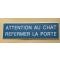 PANCARTE "ATTENTION AU CHAT REFERMER LA PORTE " format 50 x 150 mm fond bleu