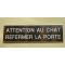 PANCARTE "ATTENTION AU CHAT REFERMER LA PORTE " format 50 x 150 mm fond noyer