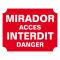 Panneau en akilux, résiste aux intempéries. Très visible. Forme rectangulaire. Fond rouge et écritures blanches. Matière : akilux. - Fabrication : France