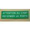 PANNEAU "ATTENTION AU CHAT REFERMER LA PORTE " format 60 x 200 mm fond VERT