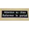 PANNEAU "Attention au chien Refermer le portail " dimensions 60 x 200 mm fond noir