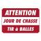 Panneau de signalisation en akilux Attention Jour de Chasse Tir à Balles. Dimensions 60 x 40 cm