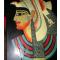 PANNEAU MURAL DÉCORATIF STYLE ÉGYPTE ANTIQUETÊTE DE PHARAON, panneau en bois laqué noir, le pharaon est en assez bon état mais un léger manque de la couleur du motif au niveau de la lèvre , la laque noire mérite une restauration car il y a des marques d' usures, donc vendu en l' état , hauteur 60 cm sur largeur 40 cm, voir photos