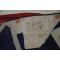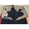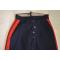En drap bleu marine avec passepoil et double bandes écarlates, avec basanes de cuir. Divers matricules et attributions, et marquages de costumier.