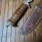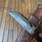 Manche en bois tourné il y a une fêle comme la plus part de ces poignard mais rien ne bouge pas de jeu , marquage bien lisible, dans son fourreau cuir.
