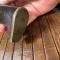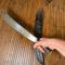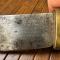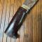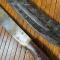 Manche en rondelles de cuir , pommeau et virole laiton , forte lame quelques taches sans piqûre.