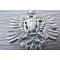 En métal argenté, présente l'aigle bicéphale autrichien couronné fermé portant un blason au centre. Ce dernier est parti dans le même style que les armes impériales. Reliefs un peu atténués.