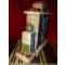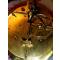 Les Parties Stylisées sont en très bon état, Colonnes,Boules en Onyx,Fronton,cage Lanterne, Métal argenté gravé,Le Marbre Beige structurel presente quelques éclats dûs à son Age et à son poids (20kg) et sa Taille 42 x42 x14 cm.