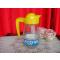 Verre facetté et verseur à poignée polymère. Le verseur se visse sur la carafe.