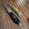 PETIT COUTEAU ORIENTAL MANCHE EN CORNE INCRUSTATION COLORÉ.