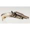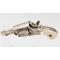 Petit revolver de poche appelé "puppy" 6 coups simple et double action calibre 5,5mm percussion annulaire / 22 court, finition luxe nickelé à plaquettes en matière noble. Nickelage en majeur partie présent sans aucune oxydation. Mécanisme complet et fonctionnel sans aucun jeu. canon rond de 37mm, rayures brillantes finement tachées. Longueur totale 11cm. Gravure "Au Départ" sur le dessus.