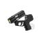 - Laser rouge 635 nm intégré au pistolet avec commutateur sous la crosse (utilise 3 piles LR44 - Non fournies)