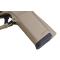 La culasse est travaillée, avec entre autre, l'usinage de stires obliques à l'avant et à l'arrière, ce qui offre une meilleure préhension pour charger votre réplique; et idéal si vous avez un point rouge intégré en partie arrière. La sécurité a été placé sous la culasse pour une prise en main plus intuitive. Sans oublier le canon externe, fileté permettant d'y monter un silencieux. G&G a développé un système de compression de gaz nouvelle génération, ainsi qu'un nouveau Bloc hop upui se régle par le canon, avec une clef caché dans la poignée Le GTP9 est ici décliné en version TAN ( Sable ) La présentation est trés soignée, la réplique est vendue dans une malette en ABS de la même couleur que la réplique, et un BB Loader .