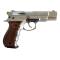 Ce pistolet à blanc de calibre 9 mm a une capacité de chargeur de 17+1 coups. Son poids de 1115g le rend assez lourd et donc plus proche d'un vrai.