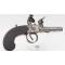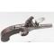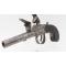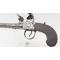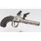 Pistolet de voyage ou de poche calibre 10.2mm dans sa finition d'origine patinée sans oxydation, gravures décoratives de piques et étendards, canon rond dévissable. Mécanisme complet et parfaitement fonctionnel sans usure. Crosses en noyer sans accident. Longueurs totales 18,5cm. TBE vers 1800-1810.