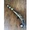 Bois incrusté d'os décoré et cloutage argenté , canon acier à pans puis octogonal et légèrement trombloné à la bouche , ponté décoré d'argent local.