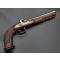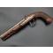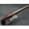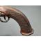 Pistolet d'officier premier Empire vers 1810 à silex transformé à percussion, produit en Belgique comme en atteste le poinçon ELG, canon octogonal légèrement tromblonné à la bouche, longueur 180mm à âme lisse, calibre 15mm, platine chien queue de culasse calotte plate contre-platine entrée de baguette en bois et pontet patiné gris avec gravures décoratives sans oxydation. Montures noyer à poignée quadrillée, fines traces de manipulation sans accident. léger jeu au carré du chien.