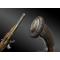 Pommeau ovoïde avec calotte ornée d’une frise en bois noirci et gravé.