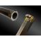 Canon octogonal, légèrement trombloné, à rayures cheveux ; guidon monté en queue d’aronde. Bagues feuillagées à la bouche et au tonnerre ; marqué sur le pan gauche dans un cartouche « LE PAGE A PARIS », sur le pan droit dans un cartouche ARQer. DE L’EMPEREUR, le pan supérieur reçoit une flèche en damasquine d’or. Gravé d’une rosace à gauche, numéroté sur le dessous N.1743 et daté A 1814. Lumière à l’or, poinçon L à sa droite.