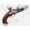 Pistolet de gendarmerie modèle 1816 à silex dans une belle patine intouchée avec ses marquages et poinçons non atténués, platine signée de la Manufacture Royale de Maubeuge, modèle 1816 sur la queue de culasse, 'MR' sur le pans droit, contrôleurs B de Bergier et M de Merley, la date 1821 avec un C du contrôleur Compas, aucune usure particulière hormis de fines taches d'oxydation localisées. Monture en noyer poinçonné d'un B, petites traces de manipulation sans accident, toutes garnitures en fer en suite poinçonnées "D" de Dechasseaux. Mécanisme parfaitement fonctionnel avec toutes pièces d'origine y compris la baguette de chargement.
