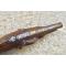 Le canon en style espagnol de 9 cm est octogonal puis rond, bouche tromblonnée. Incrustations de cuivre, deux larges poinçons non identifiés. Intérieur lisse oxydé en surface.