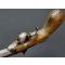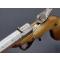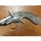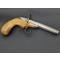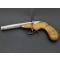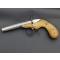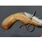 Rare et élégant petit pistolet de salon à système Flobert signé Lepage Mouthier et Fauré à Paris calibre 6 mm annulaire canon à pans long de 113mm équipé d'une hausse et guidon de visée, âme lisse légèrement tachée. Plaquette de crosse en corne blonde enveloppant la carcasse monobloc y compris l'embouchoir, pontet rond à repose doigt vissé par l'intérieur. Fabrication de qualité avec prestigieuse signature qui mérite une bonne place dans une collection d'armes anciennes. Longueur totale 21cm