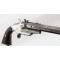Pistolet de tir monocoup calibre 22 court Frank Wesson brevet de 1870 à canon pivotant, manque la crosse d'épaule. Finition d'origine patinée, canon octogonal de 32,5cm, rayures sans usure particulière légèrement tachées. Plaquettes de crosse en bois de rose. Mécanisme complet et fonctionnel. Hausse réglable et guidon dérivable. Longueur totale 415mm