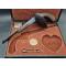 Peu commun pistolet d'assaut en coffret d'origine avec sa coquille de protection de la main, balles de cire ronde et boite d'amorce vide sans étui de 44 russian aujourd'hui classés. La balle de cire breveté par le Dr Paul Devillers en 1901, arme à système d'ouverture à clé serpent brevetée par Gastinne Renette bien avant 1900.