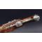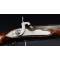 Valence » et joliment décorés de feuillages rinceaux et fleurs en bouqyets à l'or. Point de mire en argent. Platines signées « Le Lorain à Valence » et gravées de trophées d'armes aux queues. Chiens et platines à corps plats. Garnitures en fer avec pontet et calottre à longues oreilles décorées en suite de frises florales et attributs militaire. Baguette à embout en laiton