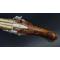 Pistolet double de vénerie à silex signé sur les platines "Le Lorain à Valence" vers 1740 transformé à percussion au début du XIXè, deux coups calibre 15mm. Canons ronds en table à méplats aux tonnerres, signés « Le Lorrain à