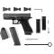 - Longueur totale : 202mm (G17), 185mm (G19), 189mm (G45), 197mm (G49).