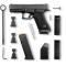 - Livré en mallette avec 2 chargeurs de 17 coups (G45, G17) ou 15 coups (G19, G49), baguette de nettoyage avec tire-chiffon intégré, brosse nylon, 2 dosserets (2mm et 4mm), chargette et manuel.