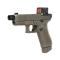GLOCK présente ici l'édition Hunter du G45 COA spécifique par sa couleur vert olive et ses équipements: