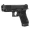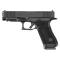 Calibre : 9x19 (9mm Para) Canon de: 4.49" (? 11,4 cm) Pas de rayure : 1:10" Chargeur (coups) : 17 Carcasse : Polymère renforce Culasse : Acier, Optic Ready, stries de préhension "Front Serrations" (FS) Finition : Brossée / finition nDLC (noir mat) Poignée : Poignée antidérapante RTF6 Visée : Guidon + Hausse polymère (visée fixe Glock) Rail picatinny Détente : "Striker-fired" (Simple action) -- système Safe Action®. THUMB REST: Le repose-pouce est désormais texturé et légèrement allongé, offrant un meilleur appui et un contrôle accru lors du recul. Longueur totale (cm) : 20,2 Poids (en g) : 680 Livré(e) avec: