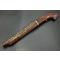 TEPPO PISTOLET Époque : fin Edo (1603-1868) Pistolet Teppo à canon Ikkaku en calibre 13,2 mm avec mouchetures en Sentoku sur le canon, Sugi Sakimeate, museau de canon. Mécanisme à mèche en laiton lisse à ressort intérieur, poinçon d'arsenal. Crosse en bois laqué clair avec raccords en laiton lisse. passage de ceinturon sous le fût rarement rencontré. Signé «Shirobei Kiomasa» (1819 - 1874). Longueur canon : 30 cm Longueur totale : 51 cm