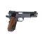 Le Les Baer Ultimate Master Combat est un pistolet de compétition prêt à enchaîner les coups. Garanti pour tirer des groupes de 3 pouces à 50 mètres, l'Ultimate Master Combat est équipé d'une carcasse, d'une culasse et d'un canon en acier NM, d'une bague de canon en acier inoxydable, d'organes de visée réglables à montage bas avec lame arrière dissimulée, d'un puits de chargeur biseauté en deux parties, d'une sangle avant quadrillée de 30 lpi, d'un quadrillage de 30 lpi sous le pontet, d'une culasse arrière dentelée de 40 lpi, de canons de culasse supérieurs, d'une sécurité ambidextre, de plaquettes de crosse en bois quadrillées et d'un réglage complet pour une fiabilité optimale. Livré avec deux chargeur