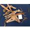 6+++ : 2 brelages Y de stock , rivets laiton , et 1 triangle cuir fauve ;