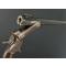 Long pistolet de tir Stevens calibre 38 annulaire brevet de 1854 produit de 1872 à 1900 à 4000exemplaires, dénommé Hunter's pet pocket rifle N°34, nickelage d'origine laissant une patine marron de l'acier sans corrosion, crosse d'épaule d'origine en fer nickelée, mécanisme complet et fonctionnel, canon lourd octogonal à rayures peu usagées et tachées, bronzage bleuté d'origine, hausse et guidon de visée, plaquette noyer. Longueur total 82cm, crosse 33cm, canon 46.5cm