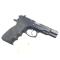 Mecaniquement l'arme est en excellent état, canonnerie parfaite, fonctionne parfaitement en DA et SA. Esthétiquement elle possède des traces de holster qui se traduisent par des traces de frottements et de manque de revetement de surface. A noter quelques coups épars. Visée COMBAT.Approvisionnée par un chargeur 16 coups acier. Plaquette caoutchouc HOGUE en état d'usure normale. Tres bon état esthétique global.