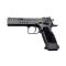 La carcasse a été dessinée avec un cache poussière long qui se prolonge jusqu'à l'avant de la culasse pour un meilleur équilibre du pistolet et d'un pontet carré. La poignée est quadrillée sur ses faces avant et arrière, et est équipée d'un puits de chargeur large en aluminium pour un rechargement plus facile et rapide.