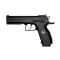 Nous retrouvons sur ce pistolet l'ergonomie si particulière aux pistolets Tanfoglio, l'axe du canon très bas sur la main. Ajoutez l'effet contrepoids apporté par le rail Piccatiny et le bull barrel, vous aurez en main un pistolet dont le relèvement au tir est très modéré, apportant un confort et une précision exceptionnelle.