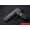 Nous retrouvons sur ce pistolet l'ergonomie si particulière aux pistolets Tanfoglio, l'axe du canon très bas sur la main. Ajoutez l'effet contrepoids apporté par le rail Piccatiny , vous aurez en main un pistolet dont le relèvement au tir est modéré, apportant un meilleur confort.