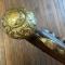 Monture bois de noyer à fut long , canon trombloné, ponté et calotte en bronze ciselé de voluptes et personnages, platine et chien gravé avec inclusion d'argent ciselé.